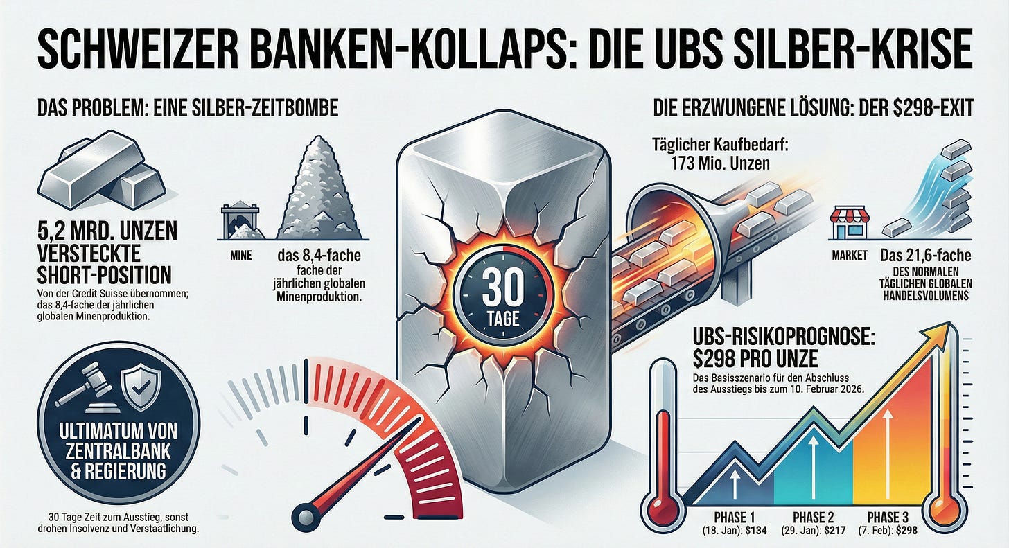 Der vorliegende Bericht beschreibt ein Szenario, das nach Darstellung des internen Dokuments der UBS einen historischen Wendepunkt für die Schweiz als Finanzplatz und für ihre jahrzehntelang gepflegte Rolle als globaler sicherer Hafen markieren würde. Im Zentrum steht ein als „urgent“ gekennzeichneter Bericht des Risk Committees der UBS Group AG, der am 10. Januar 2026 um 03:17 Uhr Zürcher Zeit verabschiedet worden sein soll und dessen Inhalt in den frühen Morgenstunden desselben Tages an europäische Rohstoffhändler durchgesickert sei. Dieser Bericht trägt den Titel einer dringlichen Risikoanalyse zur Silber-Derivateposition der UBS und spricht von einer systemischen Bedrohung für die Bank selbst, für den gesamten Schweizer Bankensektor und für die Glaubwürdigkeit des Schweizer Frankens.